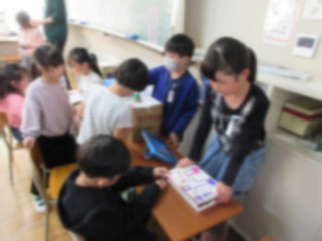 生活科の学習において2年生が1年生のために準備して、楽しい交流会が行われました。どのクラスでも、2年生は1年生に楽しんでもらおうと一生懸命に説明したり、サポートしたりと大忙しでした。でも、楽しそうにしている1年生の様子を見て2年生もニコニコ笑顔でいっぱいでした。
