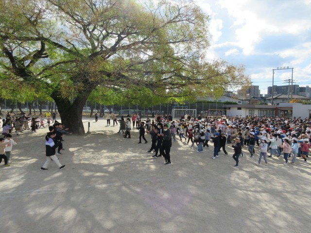 昼の部児童集会「せんだんの集い」と夜の部「せんだんのあかり」を行いました。せんだんの集いには、大野小学校の先輩として前市長の井本様、せんだんの歴史をお話しいただくふるさと文化財課の深町様におこしいただきました。集会委員の進行で、お話しを聴いたり、せんだんの木の幹回りを測ったり、「大野小音頭」を踊ったりしました。