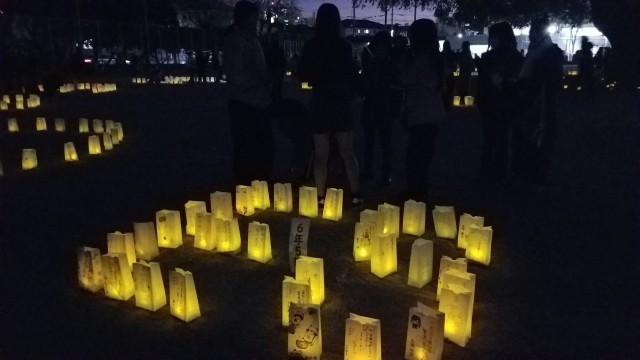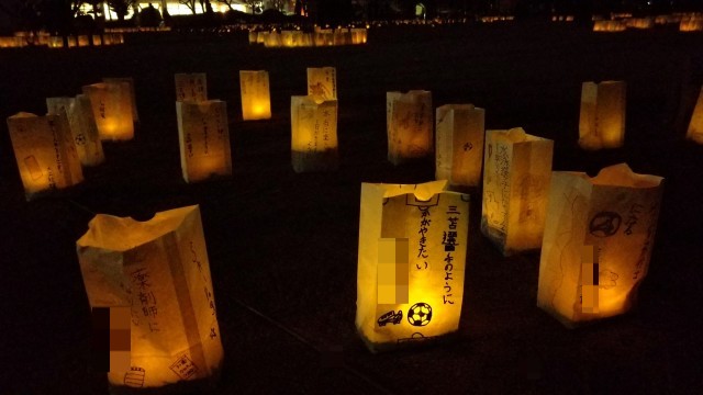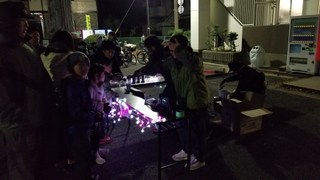 夜の部では、子どもたちが夢をかいた灯ろうが幻想的に浮かび上がり、とてもきれいでした。おやじの会の皆さんが温かい飲み物の提供をしてくださり、寒い夜でしたが、身も心もほっこりあたたかくなるひとときを過ごすことができました。