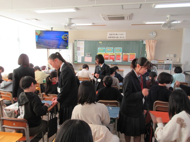 20日、21日の2日間、大野中学校2年生の職場体験学習がおこなわれ、大野小学校にも15名の皆さんが来てくれました。それぞれの教室で小学校の先生のお手伝いをしたり、勉強を教えてくれたり、遊んだり、話をしたりしてくれて小学校の子どもたちはとても喜んでしました。中学生の皆さんにとっては、これから自分の将来を考える上で貴重な体験の場となったことと思います。立派に成長した卒業生の姿は、とても輝いていました。