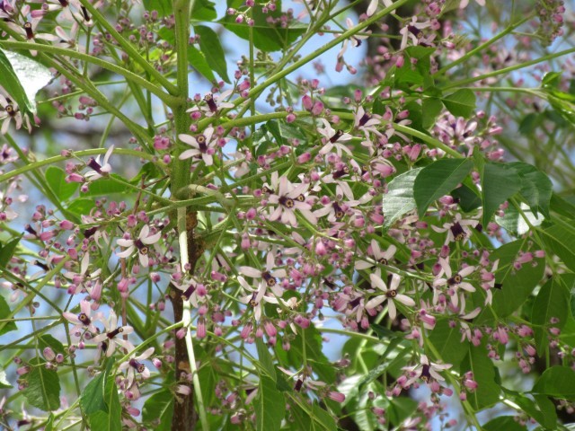 大型連休が終わり、学校に子どもたちの元気な声が戻ってきました。その元気に促されたかのように、せんだんの木にたくさんの花がついています。薄い紫の小さい花がたくさん咲いており、木の下に行くと良い香りがほのかに漂っています。近くにお越しの際には、ぜひ、せんだんの木の下までおこしいただき、花と香りを楽しんでください。