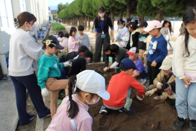 生活科で育ててきたサツマイモを、ついに収穫しました。教室前の花壇で大きく育ったサツマイモは、「野菜名人」村上さんの多大なご協力のおかげです。植え方や育て方を丁寧に教えていただき、子どもたちは毎日水やり...