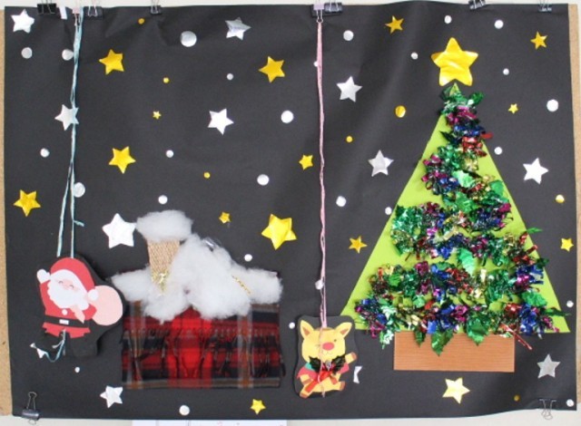 児童昇降口前の掲示板が、一足早いクリスマスムードに包まれました!これは、いつも子どもたちのために素晴らしい作品を制作・寄贈してくださる、学校ボランティアの中村あづささんの最新作です。今回の作品は、なん...