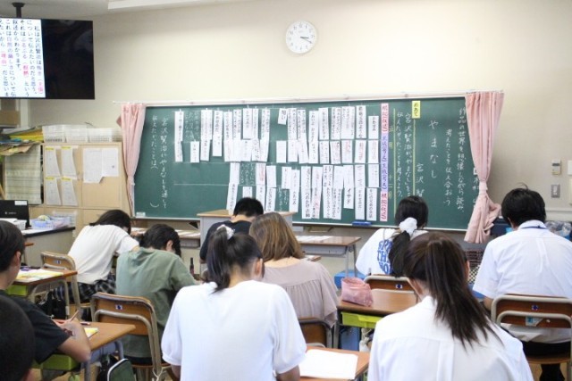 6年生は国語の授業で宮沢賢治の作品『やまなし』を学習しました。物語に込められた作者の思いについて、担任の問いかけをきっかけに、児童同士で意見を交わしながら考えを深めていきました。「宮沢賢治は、自然の中で生きることの大切さを伝えたかったのかなと思いました。カニの兄弟の会話から、命のつながりを感じました。」「友だちの考えを聞いて、自分では気づかなかったことに気づけました。話し合うことで、もっと深く考えられるようになりました。」交流の中において互いの考えを尊重しながら伝え合う姿からは、「自ら学ぶ」姿勢がしっかりと育っていることが感じられます。