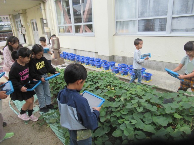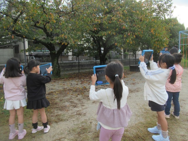 秋のやわらかな日ざしの中、1年生が生活科の学習で校庭に出かけました。テーマは「こうていで あきを さがそう」。子どもたちはタブレットを手に、落ち葉やどんぐり、赤く色づいた木の実など、秋の自然を夢中になって探しました。「これ、きれい!」「見て見て、こんなの見つけたよ!」と、友だちと見つけた秋を見せ合う姿がとても微笑ましく、校庭は秋の発見でいっぱいになりました。撮った写真は教室で共有し、「秋ってこんなにいろいろあるんだね」と、みんなで秋の魅力を楽しみました。今後は、公園にも出かけてさらに秋を探しに行く予定です。見つけたものを使って、飾りづくりなどの活動にもつなげていきます。どんな作品ができるか、今からとても楽しみです!