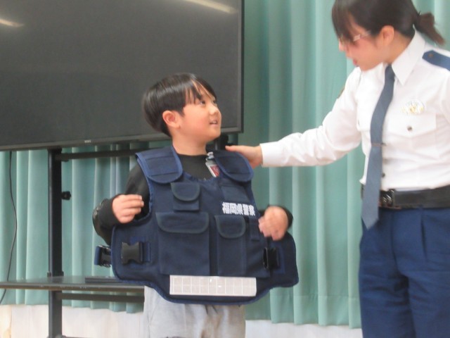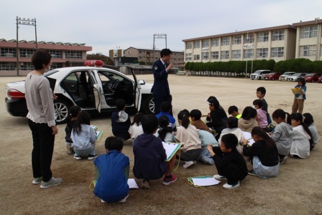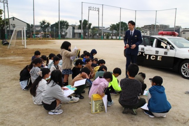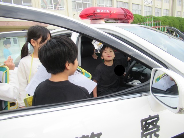 3年生は社会科で地域の安全を守る仕事について学習しています。今日は春日警察署の方に来ていただき、交番や警察署の仕事について詳しく教えていただきました。パトカーの内部を見せてもらったり、警察官の方にインタビューをしたりして、地域の安全を守るためにどんな仕事をしているのかを学びました。「どうして警察官になったのですか?」「仕事で大変なことは?」など、子どもたちの質問にも一つひとつ丁寧に答えていただきました。登校の見守りや交通安全教室、パトロールや巡回連絡など、私たちの暮らしを守るためにたくさんの仕事があることを知り、子どもたちは「警察官ってすごい!」と目を輝かせていました。安全を守るために努力している方々の思いを知り、地域の安全の大切さを改めて感じることができました。春日警察署の皆さま、貴重なお話と体験をありがとうございました。
