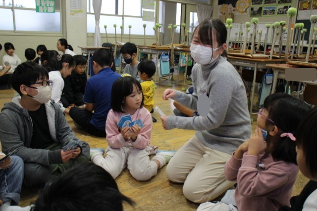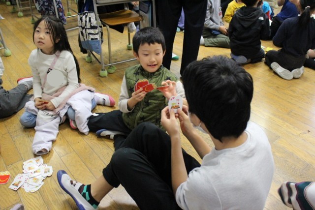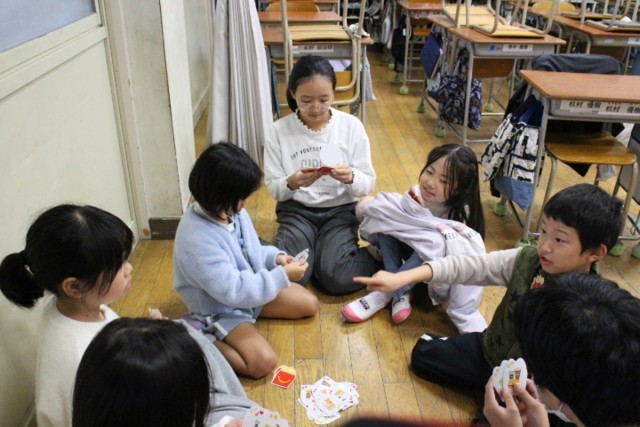 先週から今週にかけて、各学年で「なかよしデー」が行われています。今日は、1年生と6年生が昼休みに一緒に遊びました。1年生は、6年生のお兄さん・お姉さんに教室まで迎えに来てもらい、手をつないでニコニコ顔で6年生の教室へ。そこでは、トランプやボール回し、折り紙など、6年生が優しく遊んであげる姿が見られました。6年生にインタビューすると、「自分も1年生のときに、6年生に優しく遊んでもらったことをよく覚えています」と話してくれました。こうして、大野北小学校では“やさしさのバトン”がずっとつながっています。