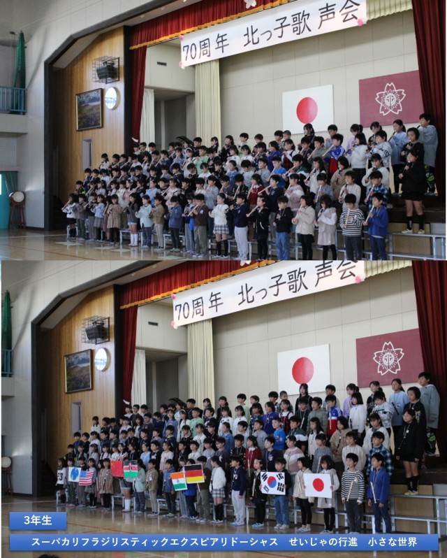 11月29日(土)、北っ子歌声発表会にお越しいただき、ありがとうございました。体育館いっぱいに響いた子どもたちの歌声は、どの学年も練習の成果を存分に発揮した素晴らしいものでした。保護者や地域の皆さまの温かい応援が、子どもたちの力となりました。心より感謝申し上げます。これからも、音楽を通して豊かな心を育み、生涯にわたって音楽を愛する気持ちを大切にしていきます。引き続き、子どもたちの成長を見守ってください。ありがとうございました。