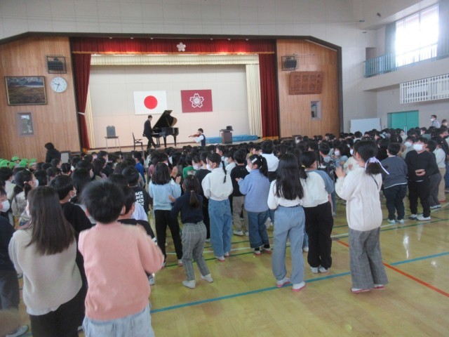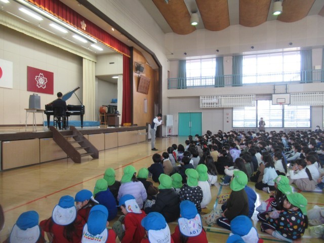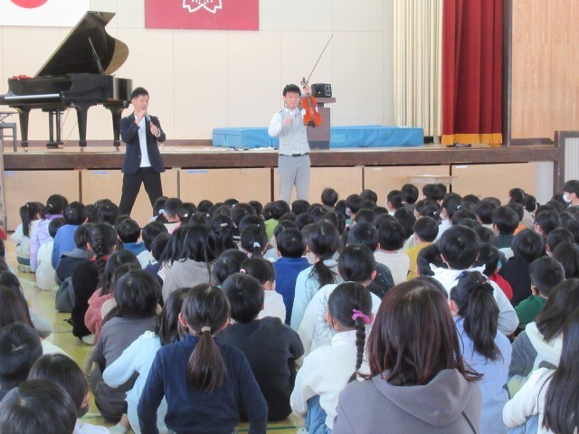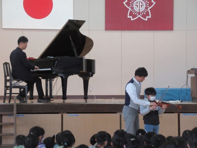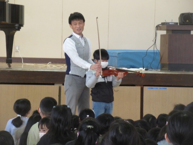 12月16日(火)1年生のためにエバリーさんが来てくれました!モーツァルトの「トルコ行進曲」やパッヘルベルの「カノン」など、クラシックの名曲を生演奏で楽しみました🎶演奏を聴くだけでなく、バイオリンの音の出し方を教えてもらったり、音楽に合わせて体を動かしたりと、みんな笑顔いっぱい😊音楽の楽しさを全身で感じる、特別な時間になりました。エバリーさん、本当にありがとうございました!💐