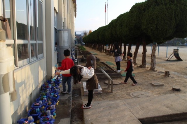 1年生の花壇に小さな緑の葉っぱが顔を出しました!「これなあに?」とたずねると、1年生が元気に「ホウレンソウだよ!」と教えてくれました😊。このホウレンソウは、野菜名人の村上さんが「だいこん」の次に持ってきてくださったものです。子どもたちは早速「おいしく育ってね」と願いながら、お水をあげていました💧。どんなホウレンソウになるのでしょう…楽しみです✨。