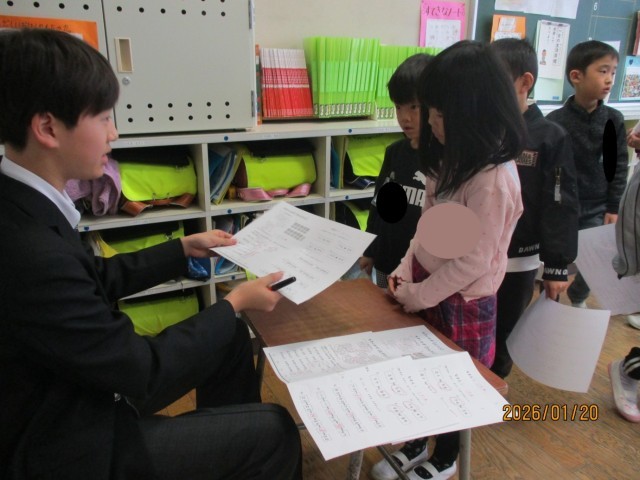 1月20日・21日の2日間、大野中学校の2年生が本校で職場体験を行いました👩🏫👨🏫各教室に入り、先生の仕事について学びながら授業の補助などにもチャレンジしました。