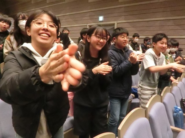 教科書で学んだ狂言を、実際の舞台で観ることで内容への理解がぐんと深まり、子どもたちは伝統芸能の世界に引き込まれていました。鑑賞後には、狂言ならではの 所作、笑い方、拍手の仕方 などについても、実演を交えてわかりやすく教えていただきました👏😄