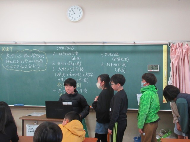 4年生は、大野城市の魅力を発信する学習の一環として、太宰府西小学校の4年生とオンライン交流📱💻を行いました。お互いの市について、「歴史」「住みやすさ」「名所」などを紹介し合い、子どもたちは興味津々の様子😊