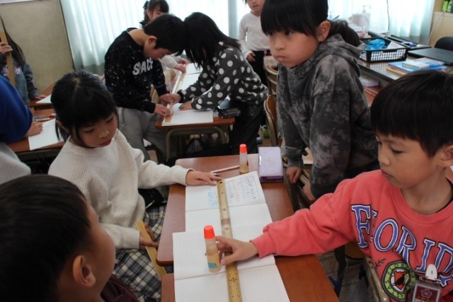 黒板の高さや廊下の幅など、生活の中の長さと単位がつながる体験になりました。具体物にふれる活動を通して、子どもたちは単位の理解を深め、「もっと測ってみたい!」という意欲も高まっています💡🌟
