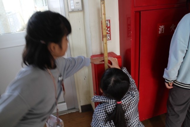 次の時間には、学校の中にある“100センチメートルをこえるもの”を予想し、実際に校内を歩いて測定へ👟📏