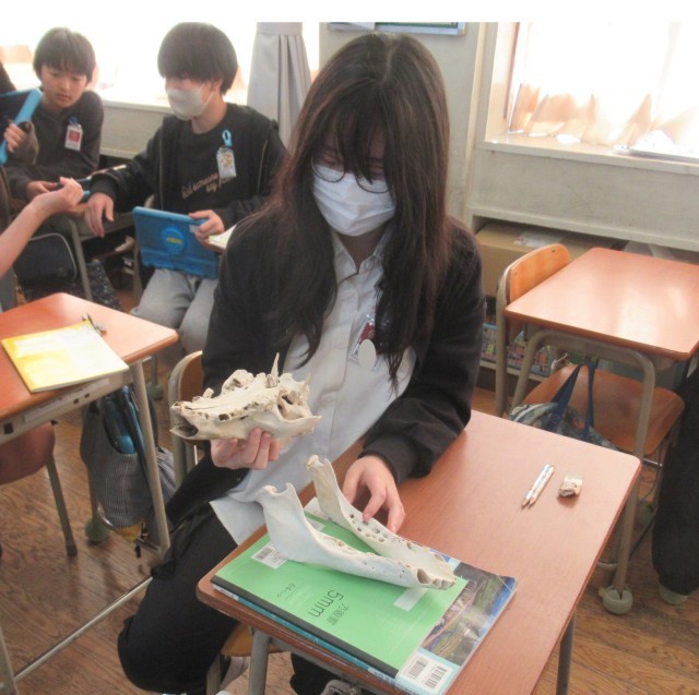 子どもたちは、実際の 動物の骨 に触れながら形や重さを確かめ、生き物の体のつくりへの関心が一気に深まった様子です。授業では、外来種の問題にとどまらず、SDGs(持続可能な開発目標) に関連した話題も取り上げられました🌏