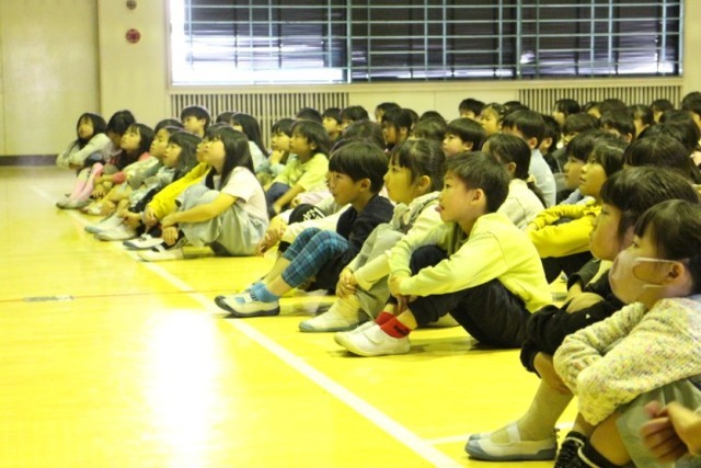 演奏が始まると、体育館の中はやさしくてあたたかい音色に包まれました。子どもたちはしずかに耳をすましながら、🌾