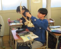 読書リーダーの活動の一環として、今週から「ビオトープおはなし会」が始まりました。天気のよい日の昼休みに、本校自慢のビオトープで読み聞かせをする取組です。先日は6年生を対象に行いました。気持ちのよい青空のもと、読み聞かせをする方も、される方も新鮮な気持ちで本の世界に入っており、たいへん素敵なひとときでした。