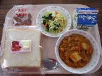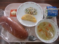 ★食パン ★牛乳 ★ミートオムレツ ★大豆とツナのサラダ ★野菜スープ ★チーズ...