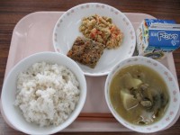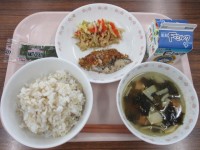★玄米ご飯 ★牛乳 ★鯵(あじ)のチーズパン粉焼き ★切干大根の炒め物 ★若竹汁...
