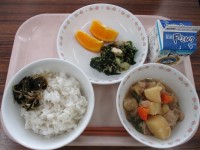 ★麦ご飯 ★牛乳 ★肉じゃが ★ほうれん草と豆腐のごま和え ★わかめのさっと煮 ...
