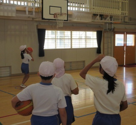 6年生は体育科でバスケットボールにトライしています。声をかけ合いながらシュートやドリブルの練習を積み重ねています。