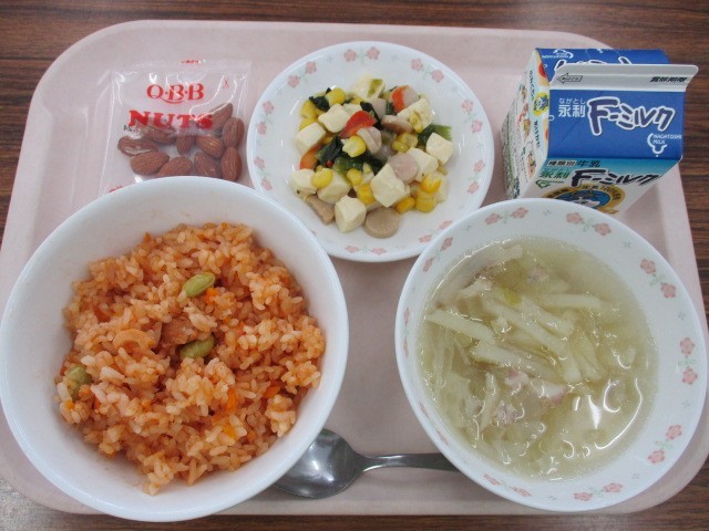 ★人参と高野豆腐のピラフ ★豆腐の炒め物 ★野菜スープ ★アーモンド
