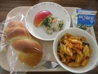 チーズは牛乳から作られます。牛乳の栄養がたっぷり詰まっています。骨をつくるもとになるカルシウムやたんぱく質など、成長期の子どもたちに必要な栄養がたくさん含まれています。30日は、ツナサラダと一緒にパンにはさんで、チーズサンドにしていただきました。
