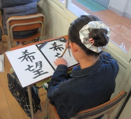 5年生は、書き初めで「希望」にトライしています。