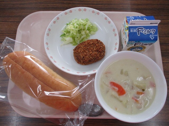 ★コッペパン ★牛乳 ★くじらメンチカツ ★キャベツ ★クリームシチュー