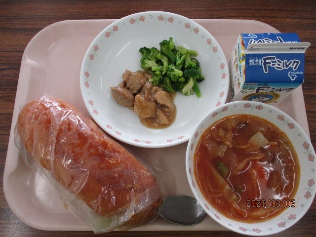 ★揚げパン ★牛乳 ★鶏肉の照り煮 ★ブロッコリー ★ミネストローネ