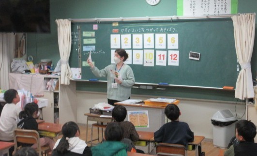 1年生は、英語を使った数や動きの伝え方にトライしています。