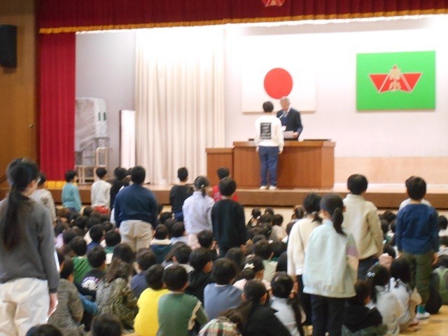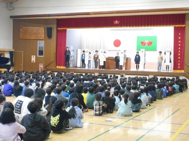24日(火)本年度の修了式・離任式を行いました。修了式では、各学年の代表児童が修了証を受け取り、春休みの合言葉や表彰などを実施しました。離任式では、本年度をもって学校を離れられる13名の先生方からメッセージをいただき、お別れの言葉や花束を渡して別れを惜しみました。