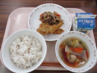 14日は朝食献立です。朝食を食べると、生活のリズムを整えることができます。早寝・早起きをして、しっかり朝食を食べると、一日を元気に過ごすことができます。運動会の練習も始まっています。朝食をしっかり食べて元気に過ごしましょう。