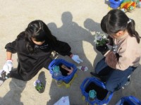 2年生は、春に咲く花の苗を一人ひとり植えています。成長が楽しみです。