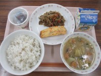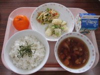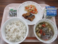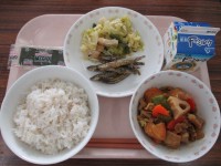 ★麦ご飯 ★牛乳 ★厚揚げと蓮根(れんこん)のカレー炒め ★きびなごの磯部揚げ ...
