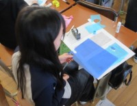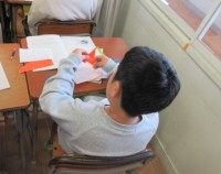 5年生は、図画工作科の学習で、色のついた紙を使ってライトのカバーを作っています。...