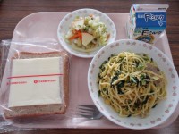 ★胚芽食パン ★牛乳 ★スライスチーズ ★ほうれん草のオイルパスタ ★白菜とりん...