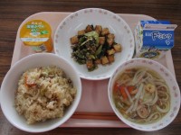 ★ツナともずくの炊き込みご飯 ★牛乳 ★厚揚げの炒め物 ★海老入り汁ビーフン 【...