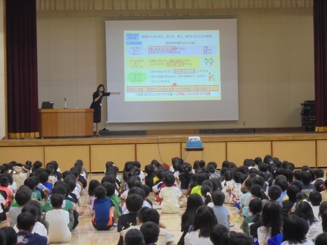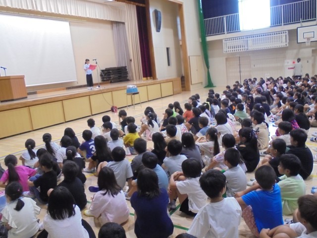 久しぶりに登校した子どもたちは、友だちとの再会に笑顔を見せ、元気いっぱいの様子でした。 始業式では、校長先生から「二学期もいろんなことに挑戦し、『ひとにやさしい東っ子』『がんばりつづける東っ子』『しっかりまなぶ東っ子』をめざしてがんばりましょう」とのお話があり、子どもたちは真剣な表情で耳を傾けていました。