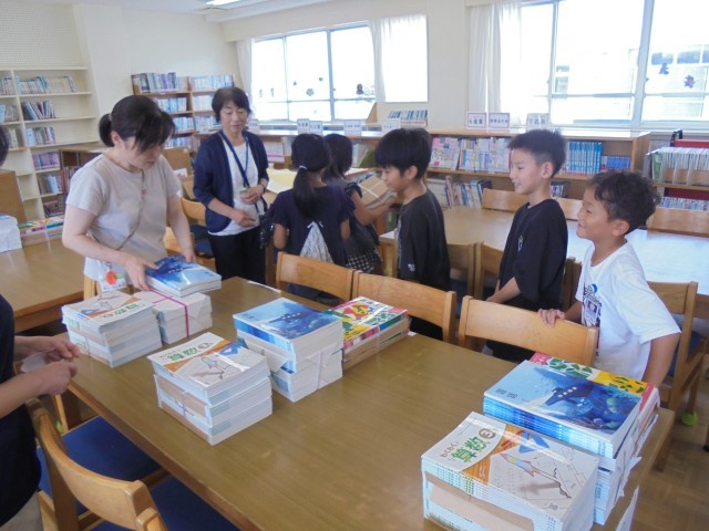 2時間目には、図書室で新しい教科書を受け取り、気持ちを新たに学習に取り組む準備を整えています。新しい教科書を見て、とてもうれしそうな様子がたくさん見られました。