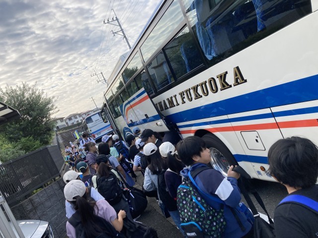 澄み渡る朝の空の下、修学旅行の出発式が行われました。緊張と興奮が入り混じった表情の子どもたち。仲間と過ごす特別な時間への期待を胸に、笑顔でバスに乗り込みました。先生方からの温かい言葉を受け、いよいよ出発です。