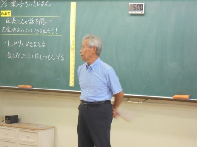 3年生総合的な学習「東っ子ちいきじまん」の学習で、5地区の各区長さんに来ていただき、地域の取り組みや行事などを教えていただきました。子どもたちが知らない取り組みや行事も多く、興味をもってお話を聞く姿が見られました。