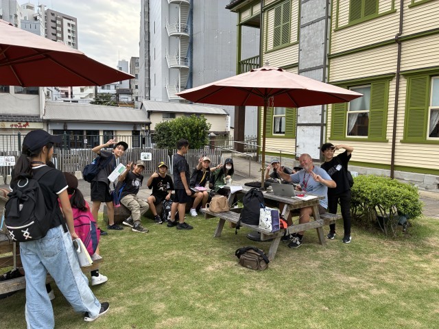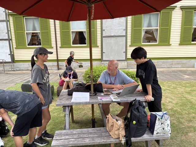 1つ目、6年生は「逞しい!」「生きる力がある!」ということです。1日目のフィールドワークの地図はとても簡略的なもので、「この情報が少ない地図で時間通りに出島に帰って来れるのだろうか?」と心配になるほどでした。しかし、多少のハプニングはあったものの、どの班も時間通りに帰ってくることができました。「校長先生は内心大丈夫かな?と心配していたのよ。」と集合場所に集まった子供達に言うと「わからなかったから、歩いている長崎の人に聞きました!」「同じ小学生の人に聞いたり、ついて行ったりしました!」と。この写真の出島の集合場所でも、私が同席した外国の方とお話ししていると、恐れることなく、習った英会話を試してみようと会話に入ってきて驚きました。積極的な対話力、6年生の生きる力、逞しさを感じました。