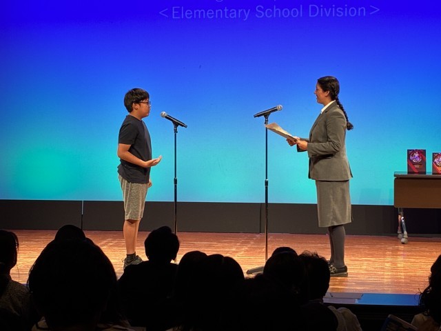2日の英語スピーチコンテストでは、5年生の松田さんが、好きな勉強の科目や休みの日の過ごし方について英語で流暢にスピーチすることができました。相手の目を見て、ジェスチャーを交えながら表現力豊かにスピーチすることができました。5年生のお友達も会場に聴きに来てくれていました。松田さんも嬉しかったことでしょう。