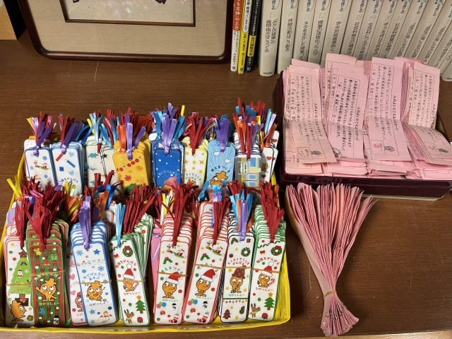 毎日、各クラスを回り、2学期は友達や先生の「良いところ見つけ」をした人にひがっしょーくんのしおりをプレゼントしています。ディスプレイの箱も見やすくしました。イラストも季節感を感じてもらおうとハロウィンバージョンや、紅葉バージョン、クリスマスバージョンなどを作りました。職員室本部職員の内田先生、王賀先生、今村先生のご協力を得て、制作や賞状の掲示をしてもらっています。子どもたちは、とても喜んでしおりをもらってくれます。「わあー,新しいのがふえてるー!どれにしようかな?」と子どもの笑顔が輝くので毎日クラスを回るのが楽しみです。
