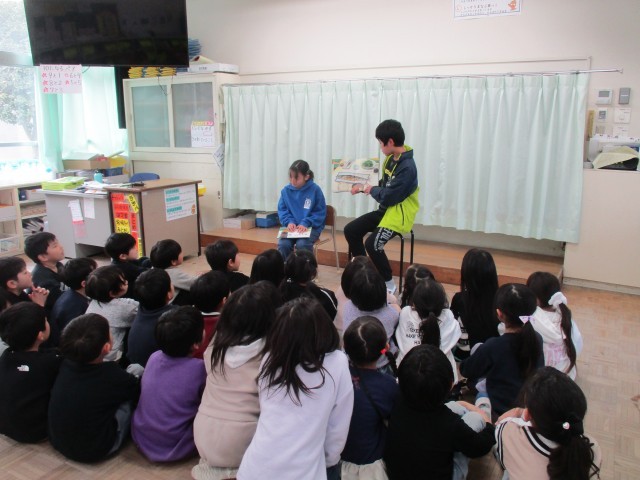 子どもたちは、上級生が読んでくれるお話に興味をもち、静かに耳を傾けていました。読み手の図書委員も、練習の成果を発揮し、感情豊かに読み進める姿が見られました。