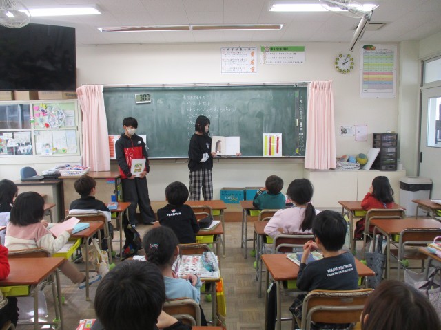 チャレンジタイムの時間に、図書委員会の児童が1~3年生の教室にて読み聞かせを行いました。
