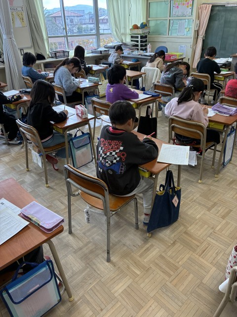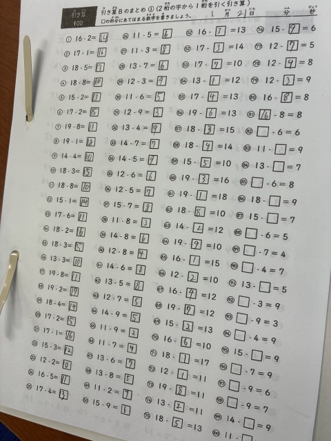 今週から、これまでのチャレンジタイムを見直し、全校一斉に学年で決めた四則計算プリントを3分間集中して解くチャレンジタイムに改善しました。これまでの国語.算数から算数に特化したのです。主幹教諭の先生が全校放送で、開始と終了を知らせるようにしました。解けた数は毎日記録して、一問でも多く解けるように頑張ります。3分間はどの子も「息をしてますか?」と聞きたくなるくらい集中して鉛筆を走らせています。計算力、集中力を鍛えるこの全校一斉の取組の効果が現れるのが楽しみです。