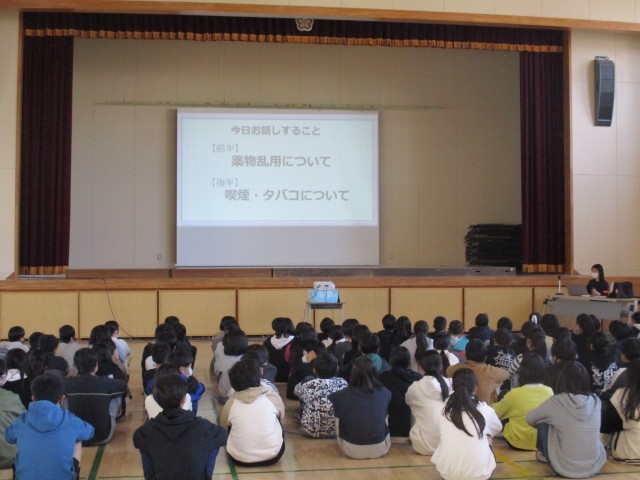 最近、よく耳にする「オーバードーズ」や「危険ドラッグ」についての話やたばこの害についての動画もあり、子どもたちはしっかりと話を聞いていました。